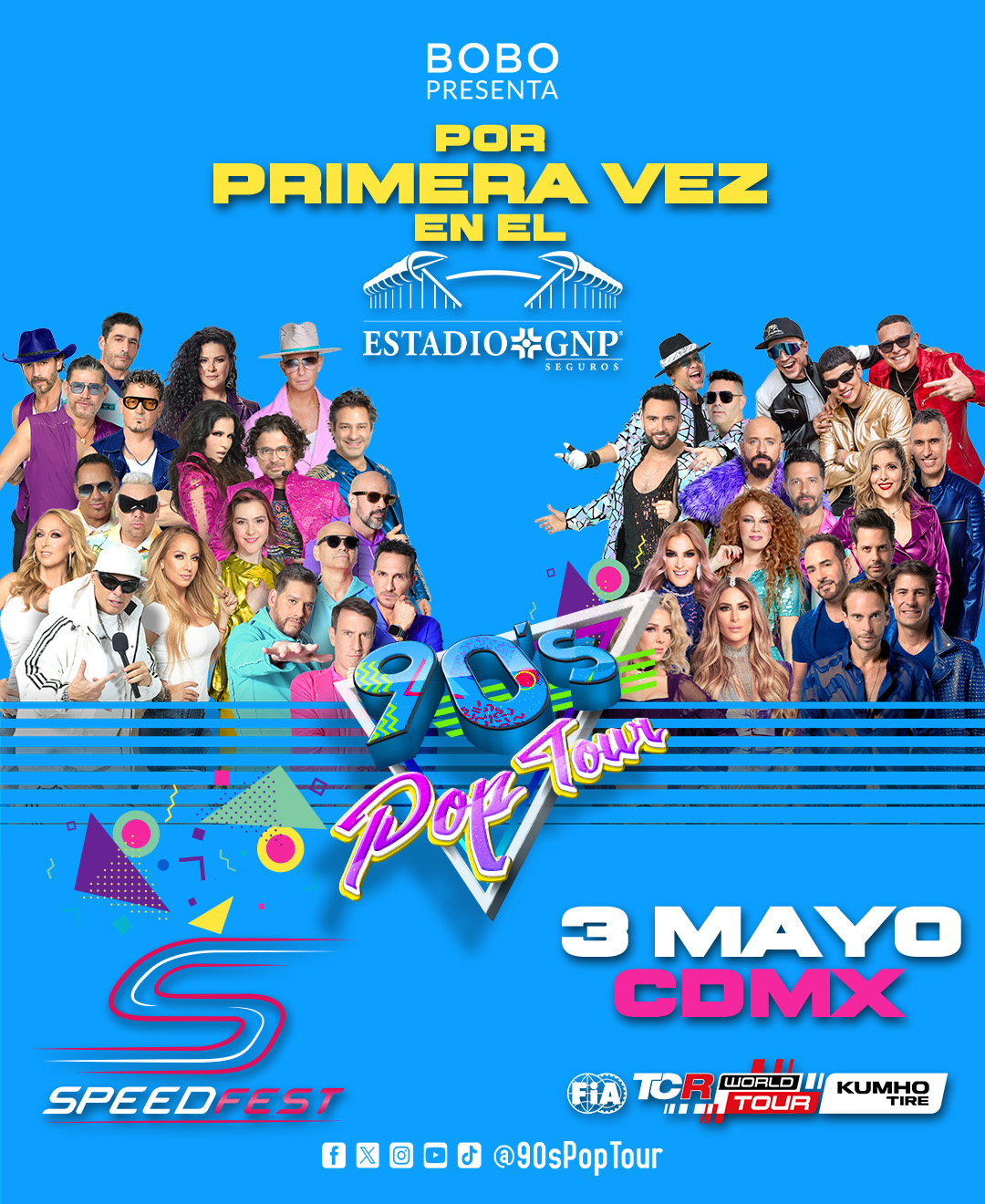 Al concluir las actividades en pista, todos los asistentes vivirán una noche inolvidable con el 90’s Pop Tour en el Estadio GNP, reuniendo a más de 35 artistas en el escenario para hacer vibrar al público mexicano en una fiesta de nostalgia y celebración con: JNS, Kabah, Magneto, Mercurio, Sentidos Opuestos, Caló, The Sacados, Litzy, MDO, Lynda, El Círculo, SBS y Ari Borovoy,