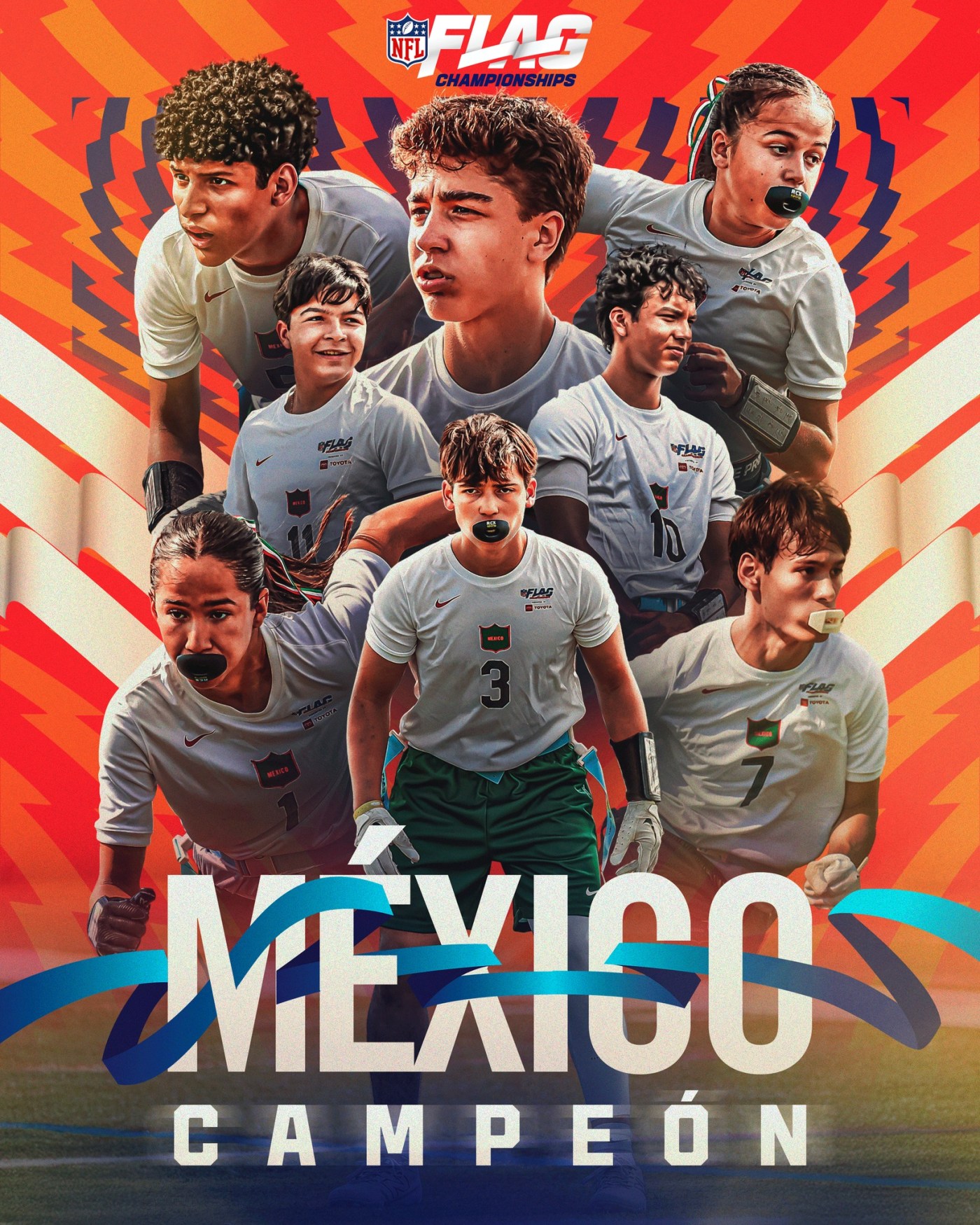 - Los jóvenes mexicanos son del equipo Tornados de Monterrey, Nuevo León, quienes se coronaron en el Torneo NFL Flag Tochito 2025, en febrero pasado.