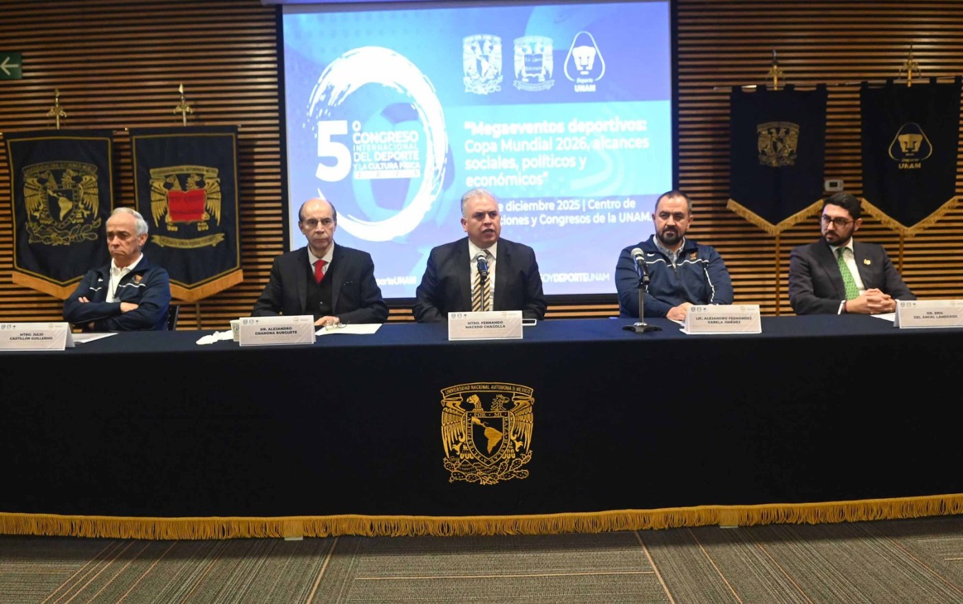 En la edición denominada “Megaeventos deportivos: Copa Mundial 2025, alcances sociales, políticos y económicos”, realizada en el Centro de Exposiciones y Congresos de la UNAM, recordó que han visitado la Universidad autoridades de distintos niveles de gobierno con el objetivo de saber “cómo mostraremos” a esta casa de estudios durante el encuentro futbolístico.